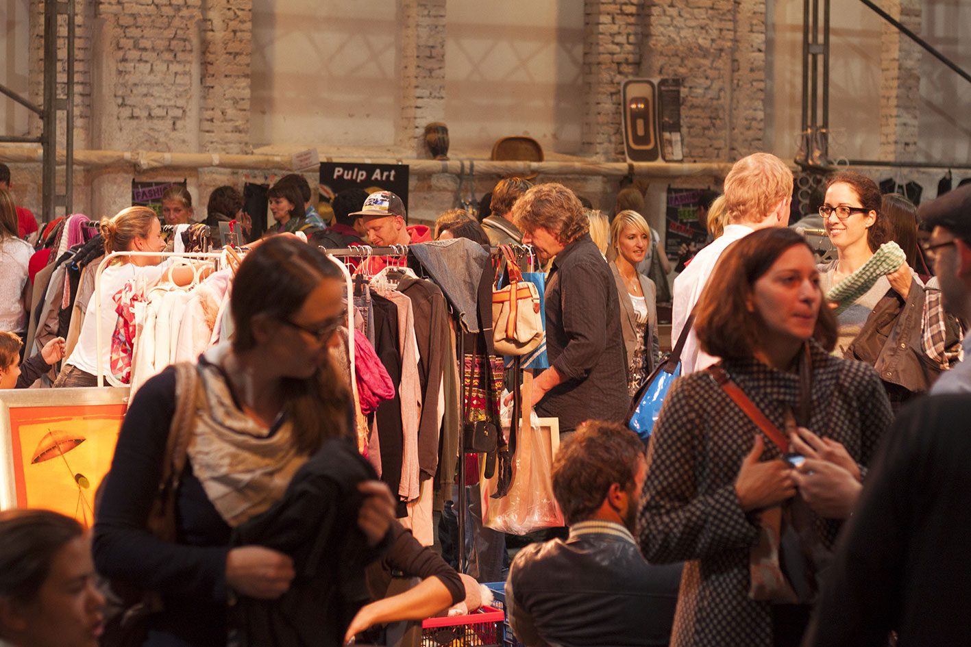 Здесь множество столов и стеллажей, полных шарфов по 1 евро, винтажных кошельков и платьев, случайных предметов, таких как пишущие машинки, марки и кассеты. Особую атмосферу добавляет живая музыка. Вы также можете поужинать в одном из различных заведений с уличной едой и коктейлями.